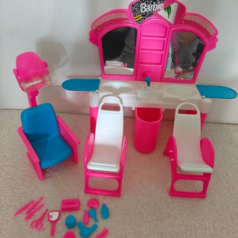 Kuvien mukainen parturi/kauneushoitola setti -90 luvulta.