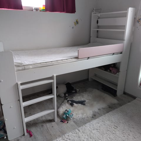 Myydään kuvan mukainen Unipuu Pikkuparvi + ekstra päätyhylly. Kunto kohtalainen, näkyy käytön jälkiä.