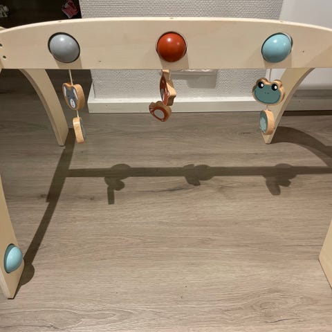 IKEA lasten leikkikehys, valmistettu puusta. Leikkikehys roikkuvilla leluilla. Mielellään nouto Raision Ihalasta.