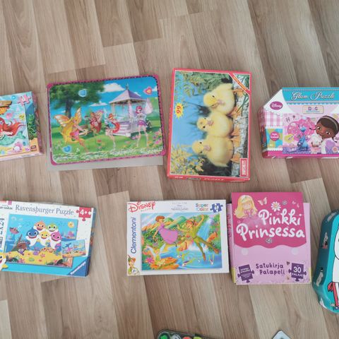 Lasten palapelejä Pipsa possu, helikopteri (puiset) ja Mikki hiiri avaamattomissa paketeissa. Mielellään nouto Raision Ihalasta.