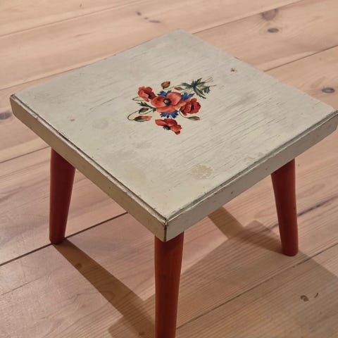 Vanha luonnonvalkoinen puujakkara