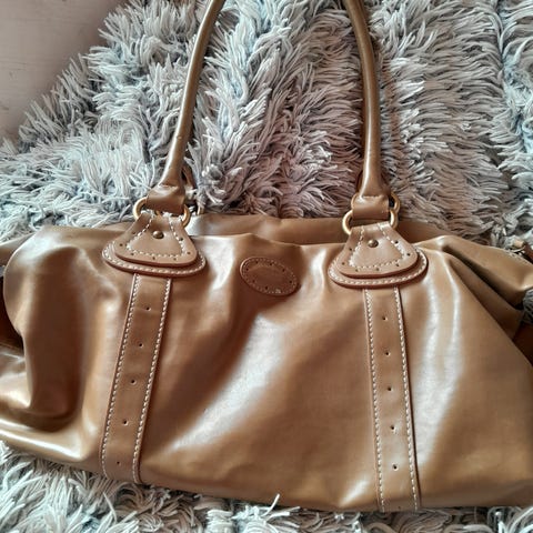 Bugatti merkin olkalaukku, koko n. 24 x 27 cm. Paljon käytetty ja kulumaa on, mutta edelleen tyydyttävässä kunnossa ja käyttökelpoinen. Olkahihnan leveys n. 5 cm.