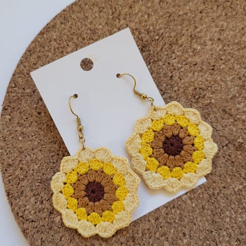 Korvikset on virkattu käsin 100% puuvillalangasta, kevyesti kovetettu.