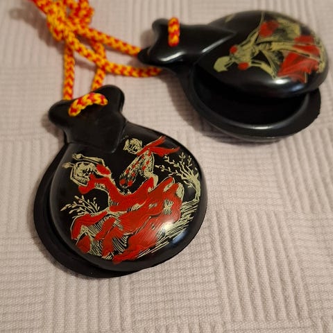 Espanjasta vuosikymmeniä sitten tuodut kastanjetit.