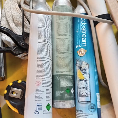 Auringonvalo hieman kellastunut laitetta, mutta toimiva laite juoman valmistamiseen. Laitteeseen kannattaa ostaa uudet juomapullot. Laitteessa mukana jonkin verran käytetty hiilihpotussylinteri.