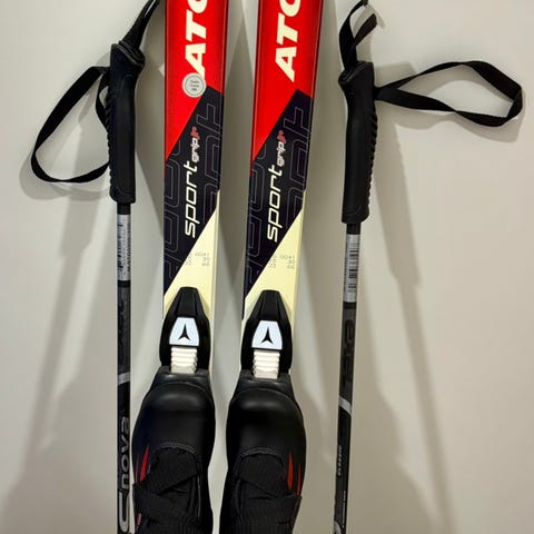 Myydään pieneksi jääneet sukset hiihtoon. Suomutus pitoalueella. Sopii erinomaisesti pienille hiihtosankareille. SNS-side. Normaaleja käytön jälkiä.