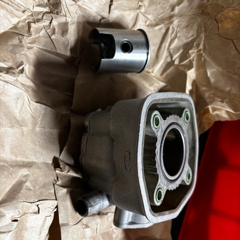 Perussiisti pyttysatsi derbin E3 moottoriin. Kuvien mukaisessa kunnossa. Mäntä istuu hyvin eikä heilu kauheammin. Tämä malli siis yhdellä M-renkaalla. Puuttuu tiivisteet ja yksi männän lukkosokka. Kilsoista ei tietoa, mutta kuvista näkee kunnon.