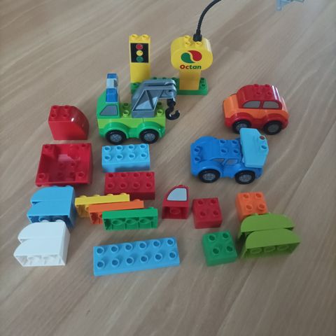 Myydään hyväkuntoinen duplon kilpa-autopaketti. Kuvissa näkyy pakettiin kuuluvat osat.