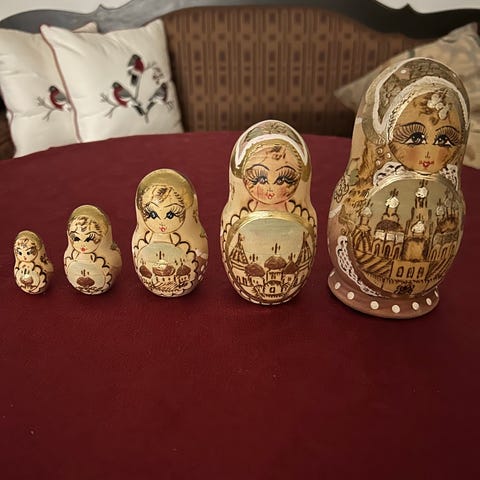 Puinen matryoshka-nukke eläinaiheinen setti
