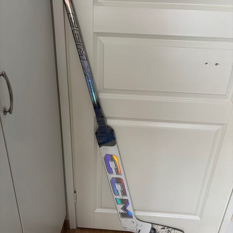CCM maila, varsi saanut Jussilla osumaa kiekosta. Kestää siis kevyempää mailapelia ja sitä paremmin soveltuu torjuntatyöhön.