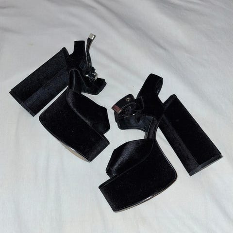 Mustat käyttämättömät nilkkurit pienellä korokepohjalla. Koko 36, pohjan sisäpituus n. 23,2 cm. Ohuehko, pehmeä ja lyhytnukkainen tekstiilivuori. Käyttämättömät.