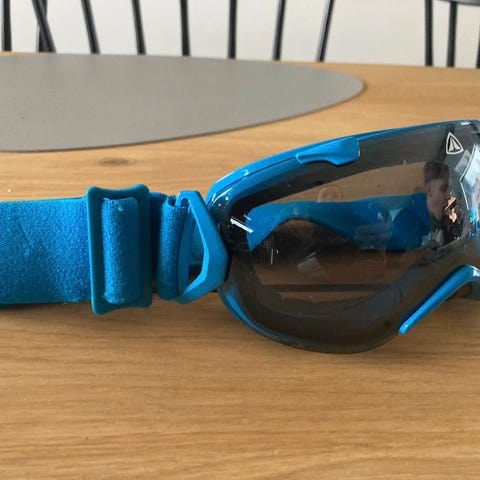Peilipintaiset laskettelulasit, valkoisella kehyksellä. Pinnassa pari pientä naarmua.