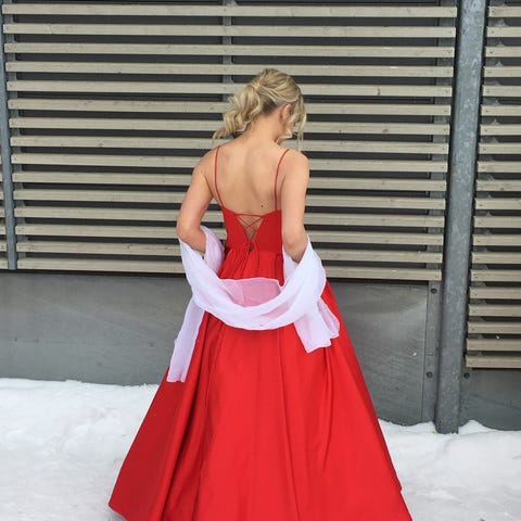 Myydään uusi käyttämätön Zazabellan Dazzling vanhojentanssimekko/iltapuku.Väri:Ruby. Puvussa on koristeellinen yläosa, joka on koristeltu helmillä ja paljeteilla. Helma on satiinia ja hameesta löytyy myös taskut. Lisäksi mukaan L/XL vannehame.