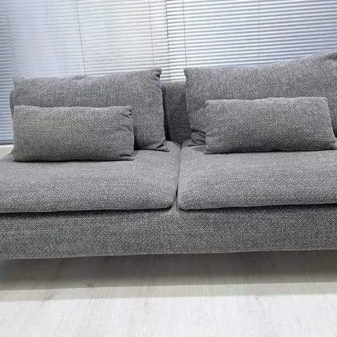 Sohva on hyvä kuntoinen. Päälliset juuri pesty. Päälliset ovat irrotettavat runko myöden. Mitat Leveys 280 cm, syvyys 98cm, divaani 150cm. Väri Isunda harmaa