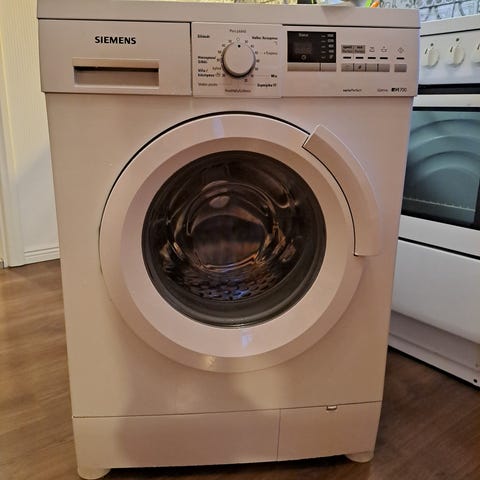 Vakiomallinen, edestä täytettävä, noin 6-8 v vanha, toimiva pesukone