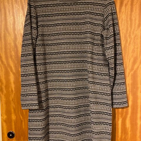 Kokomerkintä 12, vastaa L-kokoa. Hihan pituus kainalo-hihansuu 44 cm, pituus olka-helma 98 cm, pituus kainalo-helma 72 cm. Muuten oikein siistikuntoinen!
