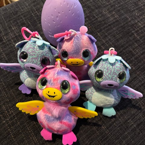 Hatchimals pehmolelu, vaaleanpunainen pöllö, jossa vihreä rusetti. Sopii lasten leikkeihin ja keräilyyn. Toimii pattereilla ( eivät kuuluu kauppaan).