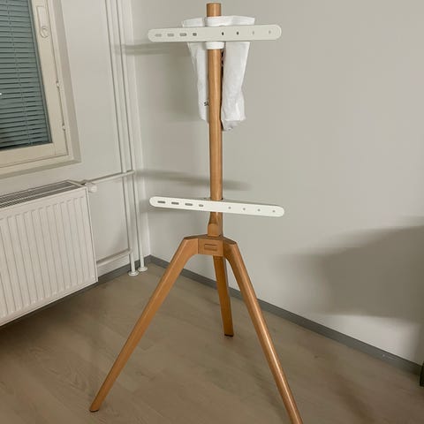 Kallistuva ja korkeussäädettävä televisio jalusta monipuolisilla kiinnitysmahdollisuuksilla.
