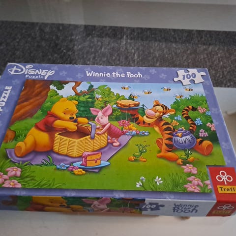 Myydään Nalle Puh 10in1 palapeli. Laatikossa 10 värikästä Nalle Puh palapeliä. Palapepeleissä on eri määrä paloja: