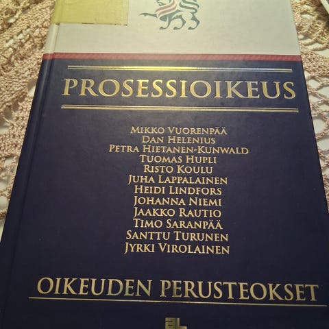 kirja, joka käsittelee oikeudenkäyntiin ja pakkotäytäntöön liittyviä oikeudellisia käytäntöjä. Julkaistu Helsingin yliopiston oikeustieteellisen tiedekunnan toimesta.