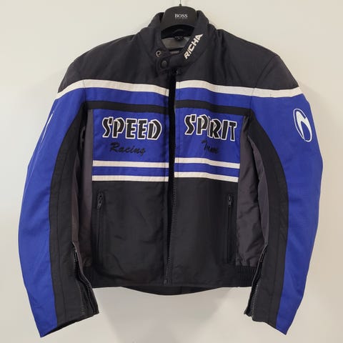 Richa miesten ajotakki, koko L. Irrotettavat suojat olka- ja kyynerpäissä sekä selässä. Käytetty siisti kunto.