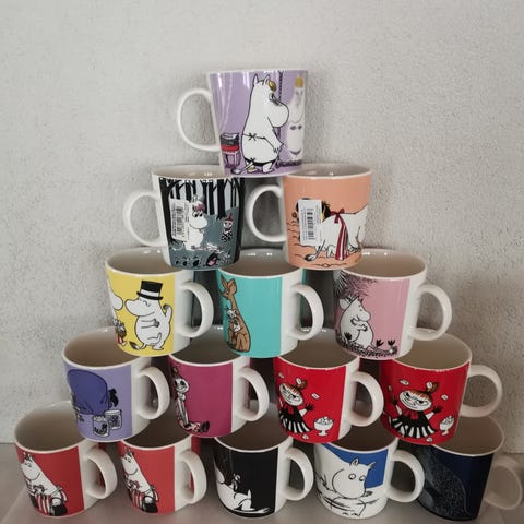 29 kpl muumimukeja myynnissä yhdessä tai erikseen. Erikseen 12ekpl