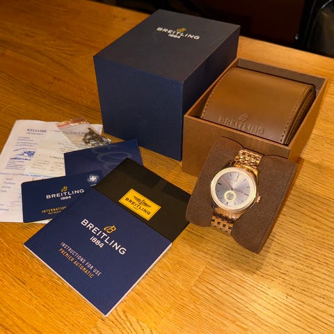 Kunto on miltei uutta vastaava, eikä ikääkään ole paljoa päässyt kertymään. Kello on ostettu uutena Lindroosilta 27.4.2024, ja koska kyseessä on Breitlingin oma koneisto, niin takuutakin on 5 vuotta eli 27.4.2029 asti.