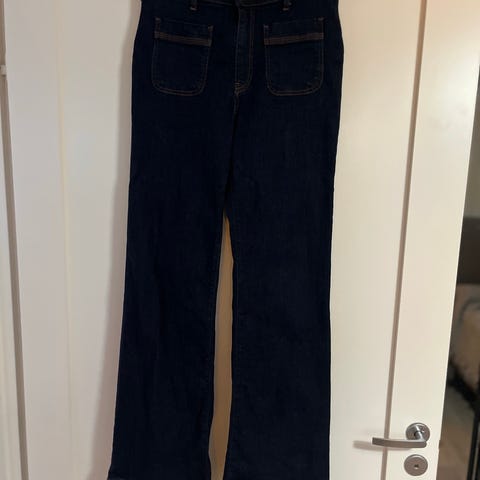Andiata siniset denimfarkut naisille, Vara jeans. Koko 38. Ostettu uusina A sitte pari kuukautta sitten. Koon muutettua nyt myyntiin. Lahje noin 80 cm. Lyhennetty heti uusina ammattiompelijalla.