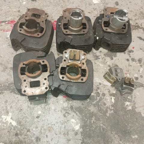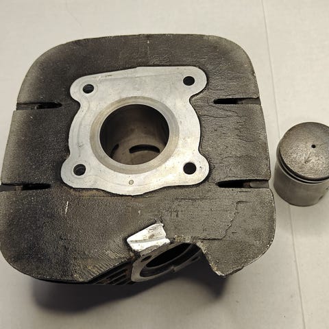 Täysin viilaamaton ja juuri porattu kokoon 42,5mm. Uusi japsi KHC mäntä mukaan. Kierteet 6mm ja kunnossa. Värinäkumit mukana. Hyvä entisöintiin.