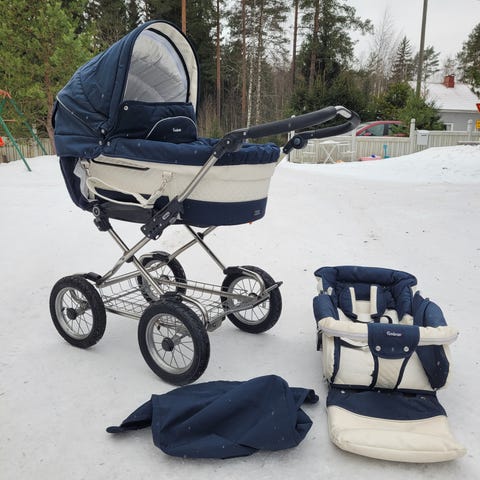 Emmaljunga type a lastenvaunut vaaleanpunaisella värillä.
