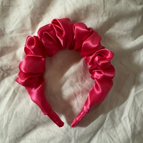 Punainen naisten hiuspanta, jossa on rypytetty kangas. Sopii erilaisiin kampauksiin ja arkeen tai juhlaan. Nouto onnistuu Kangasala/Tampere.