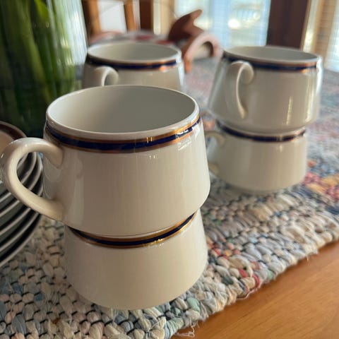Myydään hyväkuntoinen Arabian Ahti-sarjan kahviastiasto. Leimat 78 ja 82.