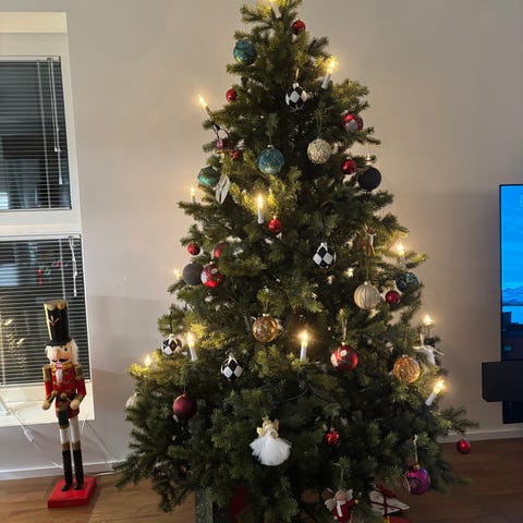 Tekokuusi valmiiksi asennetuilla valoilla. Korkeus 150cm. Mukaan kuusipussi säilytystä varten.