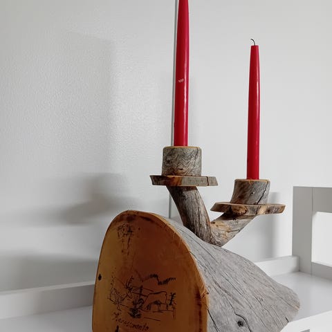 kynttilänjalka tehty kelo puusta kynttilät tulee mukana