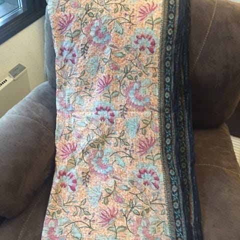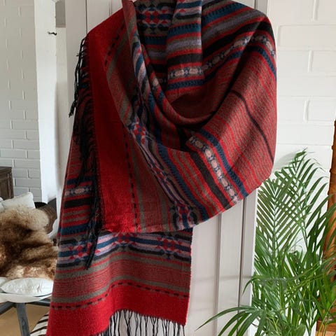 Vasemmanpuoleinen noin 61x166 cm (ilman hapsuja). Polyesteria. Pieni lankavika toisessa päässä. Oikeanpuoleinen noin 55x192 cm (ilman hapsuja). Lämmin mutta keinokuotuinen. Yksitellen 12 euroa, molemmat 20 euroa. Postitus (7-8e) tai haku. Kulkee metrolla keskustaan saakka.