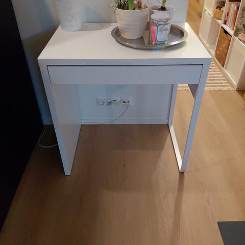 Kuvienmukainen mustanruskea/valkoinen työpiste aikuiselle tai lapselle, pieniä käytönjälkiä on mutta yleisilmeeltään tosi siisti, säilytys- ja yläosan kätisyys on vaihdettavissa. On hieman purettu mutta ala- ja yläosa yhtenäisenä, osat eivät ole kovin painavia joten melko helppo siirtää. Kuljetuskin onnistuu korvausta vastaan lähialueilla.