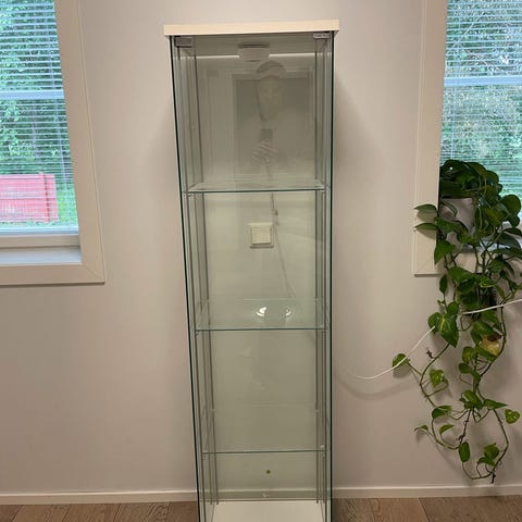 Lasivitriini, jonka kolme ylintä tasoa lasia. Alin taso puuta.