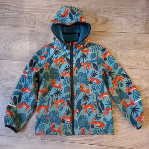 Fix merkin softshell-takki. Koko 122. Lämmin fleece sisäpuolella. Hihoissa kulumaa. Huppu tulee mukaan jos löydän sen.