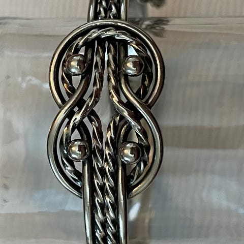 Ostetaan kuvassa oleva vuoden 2023 taiteiden yön rannekoru hopeisena. Tarjoa kuvan kera, mieluiten Imatra ja max +100km säteellä, eli kaupat kasvotusten :)