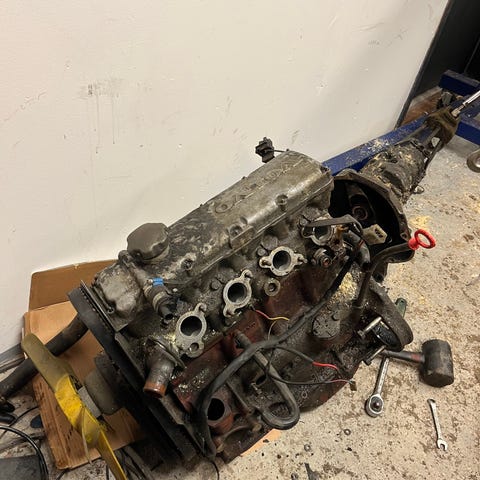 Volvo 240 B23E + M46 vuodelta 1984. Moottorilla ajettu yli 600 000 ja se on näin ollen kunnon huollon tarpeessa. Ylivaihteella kilometrejä huomattavasti vähemmän, sillä se on lisätty jälkeenpäin uutena osana. Ilmamäärämittari ja suuttumet irroitettu joskus ja tulevat mukaan.