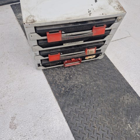 Lenkkiavaimia Avainväli av24 3 kpl, av19 2 kpl, av17 5 kpl, av15 2 kpl, av 14 1 kpl, av12 1 kpl, av9 1 kpl ja av14/15 1 kpl, av12/13 1 kpl, av8/9 1 kpl sekä piippuavain 10/11. Lisäksi rälläkkään avaimia, Wurth rautasaha ja kierretyökalun väännin.