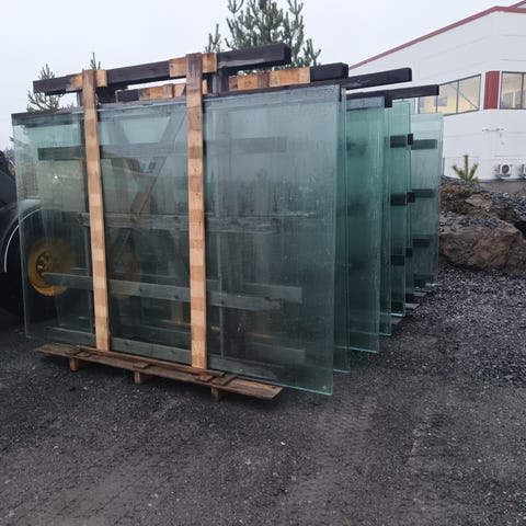 Tummaa 8mm paksuinen karkaistu lasia. Mitat 608x2747mm 5kpl. Hiotut reunat.Hinta yhteensä 500€.