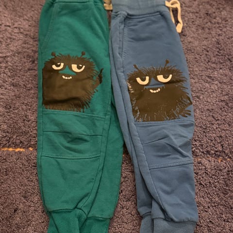 Moomin by Martinex siniset haisuli collegehousut 98cm, yhdellä ollut käytössä. Haalistumaa ja kuva halkeillut.
