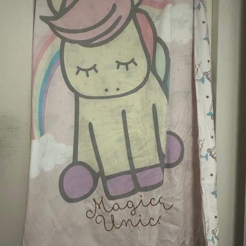 Junior sänkyyn pussilakana. Tyynyliina ei oo enää tallessa. Hyvä paljon käytetty kunto, värit tummuneet jo uudesta