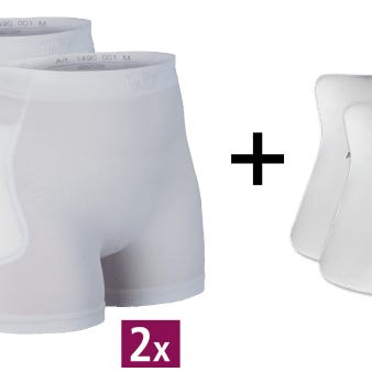 Suomen myydyin lonkkahoususetti sisältää 2 kpl lonkkasuojahousuja ja yhdet irrotettavat kilvet. Markkinoiden mukavimmat lonkkahousut ovat turvalliset, mukavat ja huomaamattomat päällä. Kestävä, laadukas tuote suojaa tehokkaasti lonkkamurtumilta. Lonkkahousut soveltuvat kaikenkokoisille käyttäjille niin naisille kuin miehille.