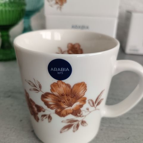 Arabian Myrna-mukia koristaa kaunis, filmitähti Myrna Loyn mukaan nimetty kukka-aiheinen kuvio, jonka taiteilija Olga Osol loi vuonna 1937. Alkuperäistä kultareunaista Myrna-astiastoa valmistettiin aina vuoteen 2005 saakka.