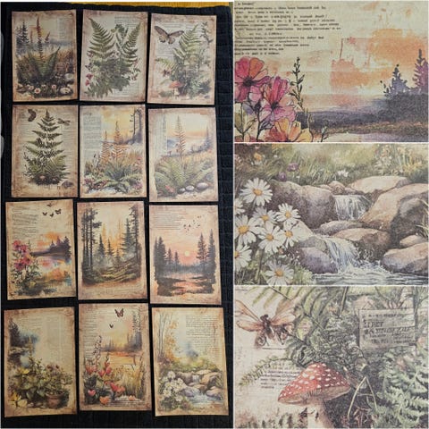 12 kpl uusia todella upeita vintage henkisiä yrtti kasvi aiheisia paksuhkoja papereita skräppäykseen askarteluun korttien tekoon tai vaikkapa kehyksiin niin saa todella kauniit taulut sisustukseen! Lisään lähiaikoina paljon erilaisia upeita papereita myyntiin.