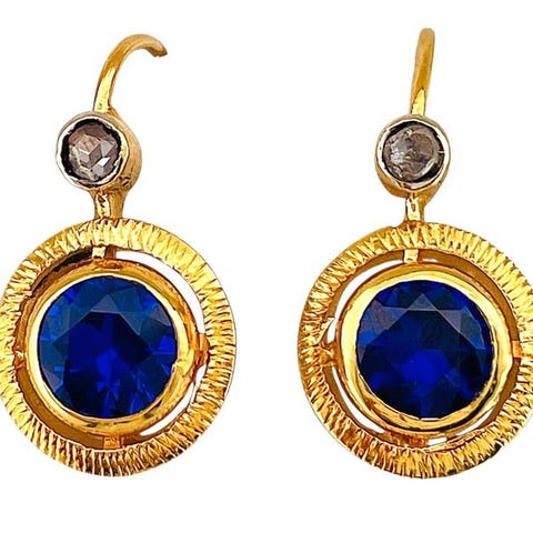 Antiikkityyliset viktoriaaniset korvakorut 1800-luvun lopulta, keltakullasta (9kt) ja hopeasta.