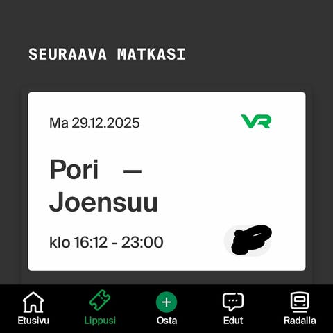 Lastenlippu Joensuu - Lahti tammikuun 7 pv klo 9 lähtevään junaan