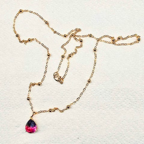 Uusi kaulakoru. Kristalleja, kullattu. Ketjun pituus 55 cm + riipus 1.5 cm.